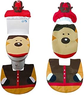 サンタクロースバスルームクリスマスデコレーション – 3ピースセットトイレシートカバー、ラグとウォータータンクトップ蓋カバー、ティッシュボックスホルダー付き–クリスマストナカイトイレタンクカバー PRTCS-3298-3PcReindeerToiletSeatCover