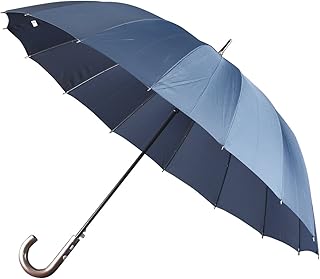 紳士用 16本骨ワンタッチジャンプ傘 軽くて丈夫なグラスファイバー骨使用 ポンジー無地 紺 3309