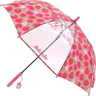 アテイン KIDS用透明窓付ジャンプ傘 グラスファイバー骨使用 親骨50cm イチゴ 名札付 ピンク 1264