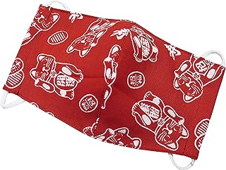 洗える!和柄・手ぬぐいマスク 招き猫(赤)大人用(大サイズ)