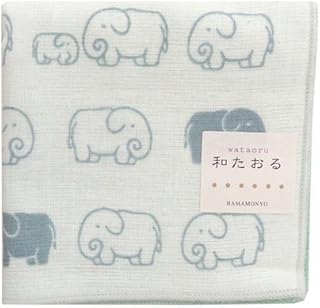 濱文様 和たおるセミウォッシュ(タオルハンカチ) ぞう エメグリーン
