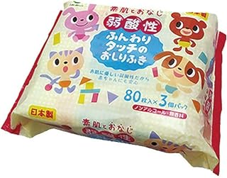 ライフ堂 あかちゃんの おしりふき 素肌と同じ 弱酸性 ホワイト 約横18cm×縦12.5cm(1枚あたり) ノンアルコール 無香料 安心 日本製 LD-035 80枚入3個セット