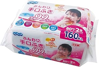 ライフ堂 あかちゃんの 手口ふき おしりふき 素肌と同じ 弱酸性 ホワイト 約横20cm×縦15cm(1枚あたり) ノンアルコール 無香料 安心 日本製 LD-207 80枚入2個セット