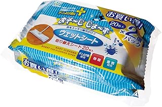 ライフ堂 掃除シート フローリングワイパー用 ホワイト 約横20×縦30cm(1枚あたり) ダニ除け剤配合 除菌 重曹プラス ウェットシート LD-042 20枚入 2個セット