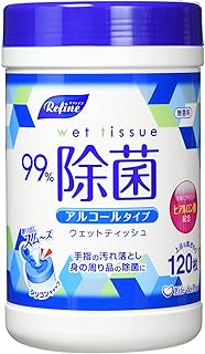 ライフ堂(Lifedo) ウェットティッシュ 99%除菌 アルコール ボトルタイプ ホワイト ボトルサイズ約17.5×10×10cm/約縦20cm×横14cm(1枚あたり) ヒアルロン酸配合 無香料 日本製 LD-102 120枚入1個セット