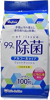 ライフ堂(Lifedo) ウェットティッシュ 99%除菌 アルコール ボトルタイプ 詰め替え ホワイト 約縦20cm×横14cm(1枚あたり) ヒアルロン酸配合 無香料 LD-103 100枚入1個セット