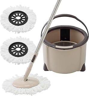 回転モップ Eyliden. フロアモップ フローリング ワイパー モップ回転 モップ絞り器 モップセット グレー クロス2枚 取替 バケツ付き 一層式 洗浄 脱水 乾拭き 水拭き 掃除 軽量 床に優しい 長さ調節 掃除モップ