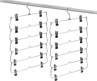 HUJK スカートハンガー ズボン 6段 スチール クリップハンガー 2セット ステンレス ハンガー 省スペース