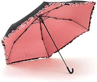 solshade 019 日傘 フリル 折りたたみ傘 ピンク&ブラック 完全遮光 晴雨兼用 折り畳み傘 晴雨兼用 耐風設計 軽量 完全遮光 100% 撥水 UVカット UPF 50+ 収納袋付き (ブラックピンクフリル 019) solshade_019
