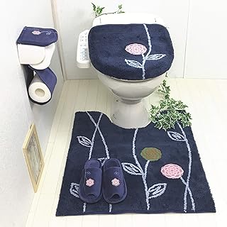 トイレマット 3点セット 洗浄暖房型 ペーパーホルダーカバー おしゃれ かわいい 花 モダン 北欧 フラワー 鮮やかな青 オカ エトフ ネイビー