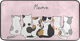 linqin 吸収性キッチンマットとラグ 39インチ x 20インチ ピンクの背景にかわいい猫 滑り止めフロアマット キッチン/バスルーム/シンク/洗濯/自宅/オフィス用