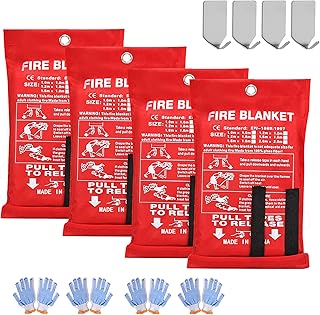 防炎ブランケット 39 x 39インチ 緊急サバイバルグラスファイバーブランケット アップグレード 防火クロス フック4個と耐熱手袋4組付き キッチン キャンプ グリル用 (4枚パック)