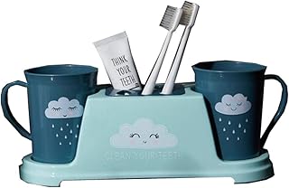 [ベィジャン] 歯ブラシホルダー 歯ブラシ立て 歯ブラシスタンド コップホルダー 洗面所 バスルーム 多機能収納ケース 歯ブラシ置き 歯磨き入れ カップルコップ おしゃれ かわいい (ブルー,F)