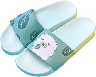 Moecat スリッパ 親子 ビーチ サンダル 子供 レディース シャワー 滑り止め 軽量 かわいい 動物柄 (グリーン アルパカ 内長19cm)