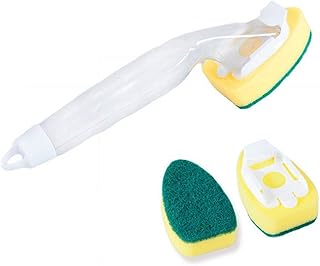 DKKLRR キッチンブラシ スポンジ たわし 柄付き 洗剤入れ 自動液体 食器洗い 台所掃除 浴室ブラシ クリーナー 抗菌 泡立ち ロング 掃除 多機能 便利 手を傷つけない 主婦 トイレブラシ お風呂掃除 キッチン道具 スコッチブライト 台所用 キッチンスポンジ セット