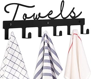 Goutoports タオルラック 壁取り付け バスルームタオルホルダー キッチンメタルホルダーラック 大胆なフォントドアフック 防錆 防水 6フック ブラック