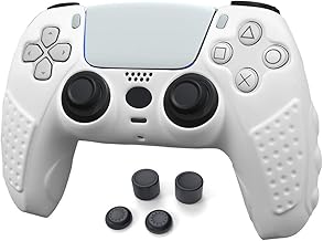 Ps5 コントローラー対応 カバー プレイステーション5 シリコン素材 スキンケース ソフトカバー PlayStation5 保護カバー グリップ 耐衝撃 滑り止め抜群 簡単装着【アシストキャップ3種類6つ付き】 (白)