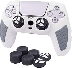 Ps5 コントローラー対応 カバー プレイステーション5 シリコン素材 スキンケース ソフトカバー PlayStation5 保護カバー グリップ 耐衝撃 滑り止め抜群 簡単装着【アシストキャップ3種類6つ付き】 (白/灰)