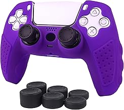 Ps5 コントローラー対応 カバー プレイステーション5 シリコン素材 スキンケース ソフトカバー PlayStation5 保護カバー グリップ 耐衝撃 滑り止め抜群 簡単装着【アシストキャップ3種類6つ付き】 (紫)